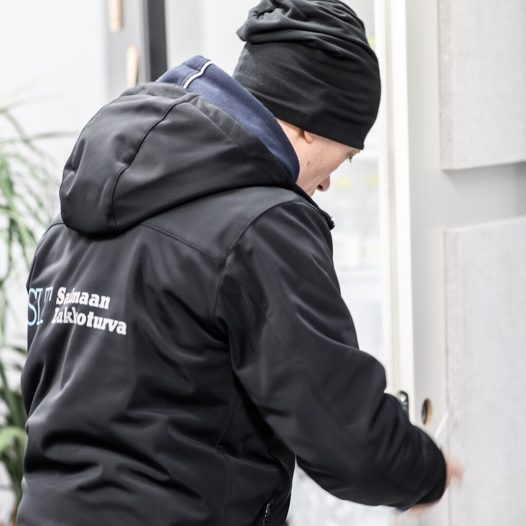 Lukkoseppä esittää saapuessaan asiakkaalle viranomaisen myöntämän Turvasuojaajakortin.